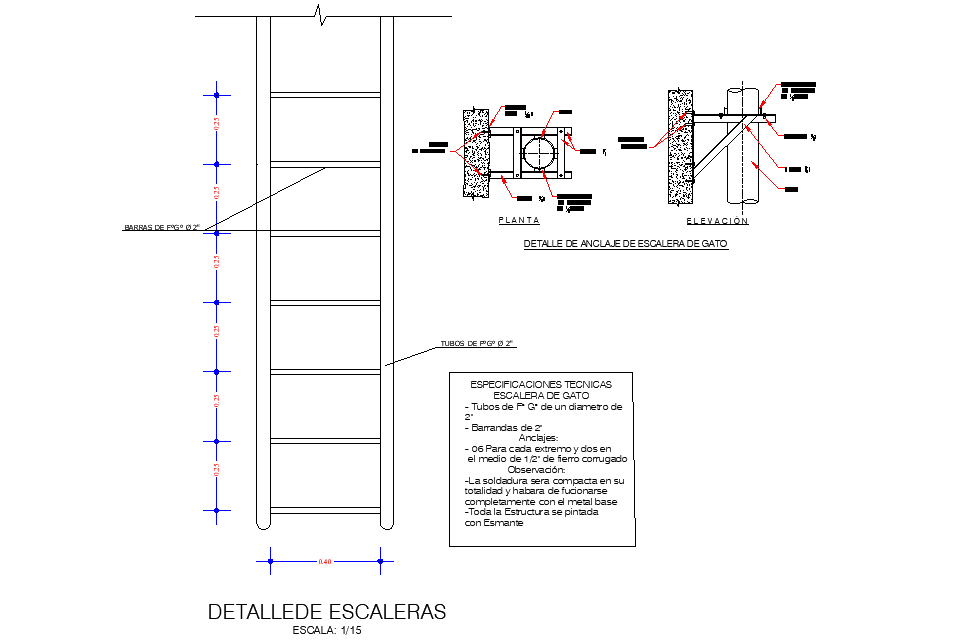 Detail of staircase dwg file, specification detail, dimension detail, naming detail, scale 1:15 detail, plan and elevation detail, concrete mortar detail, etc.