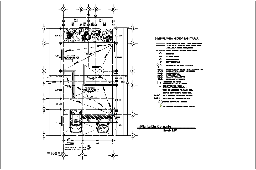 Set plan of house with hydraulic view dwg file in plan with view of area distribution with view of