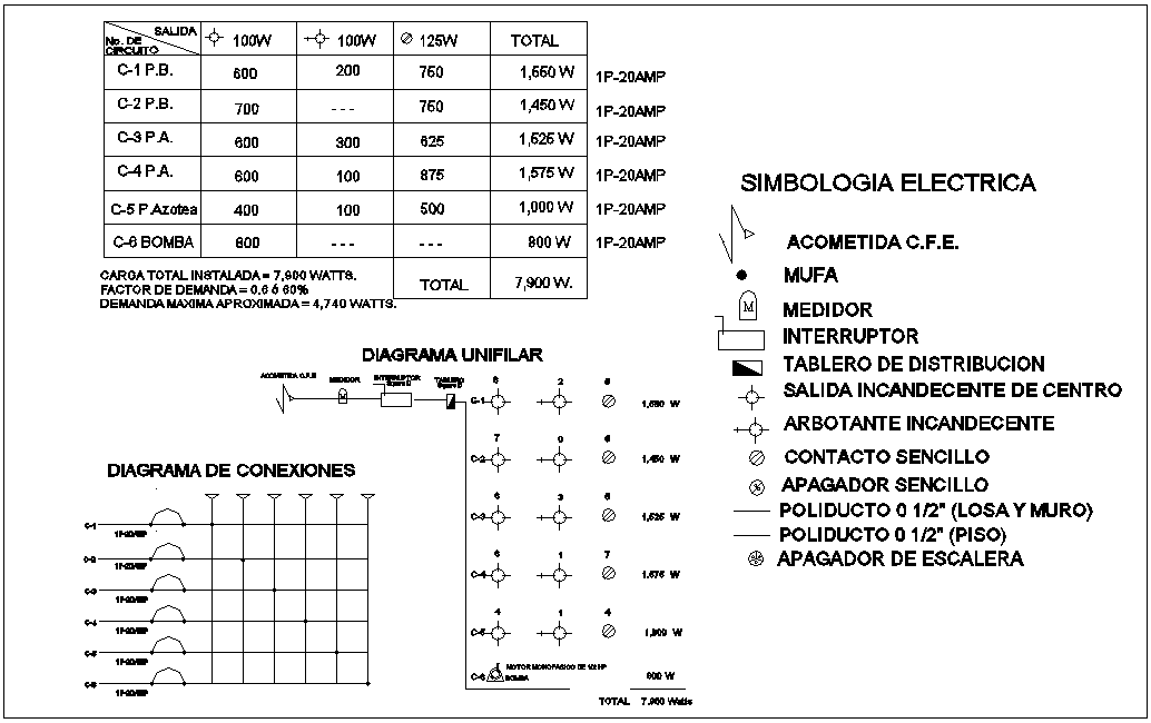 Walt,ampere and electric diagram detail for house dwg file
