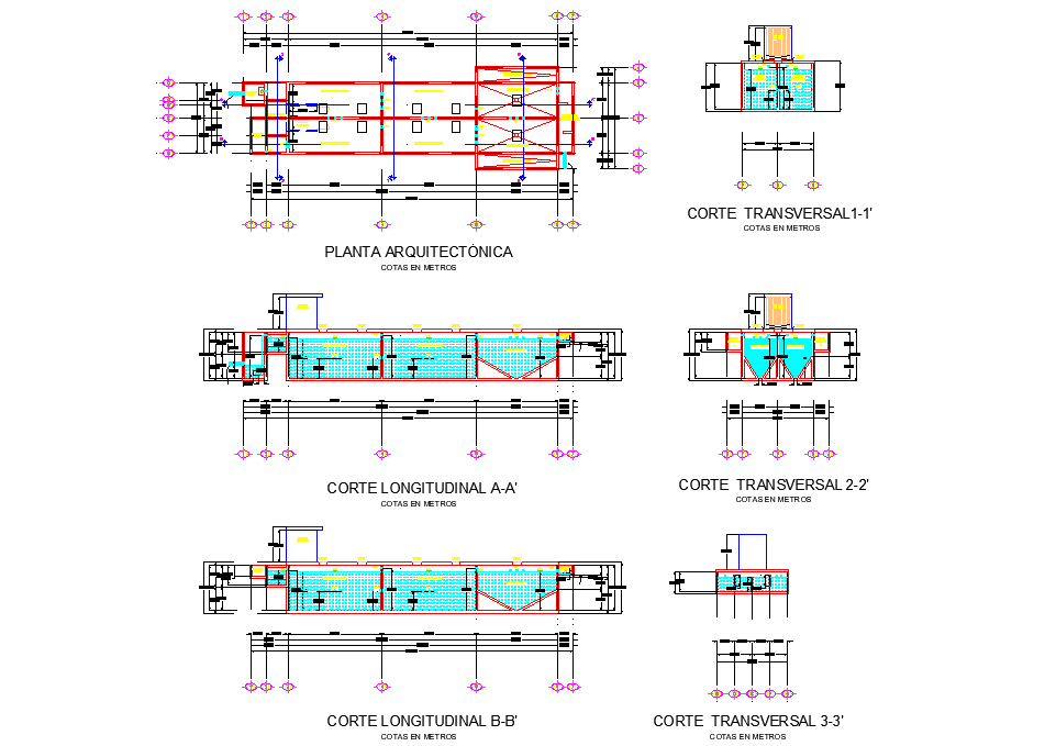 Preliminary plan of treatments autocad file, plan and section detail, centre line plan detail, dimension detail, naming detail, hatching detail, cut out detail, section A-A’ detail, section B-B’ detail, etc.