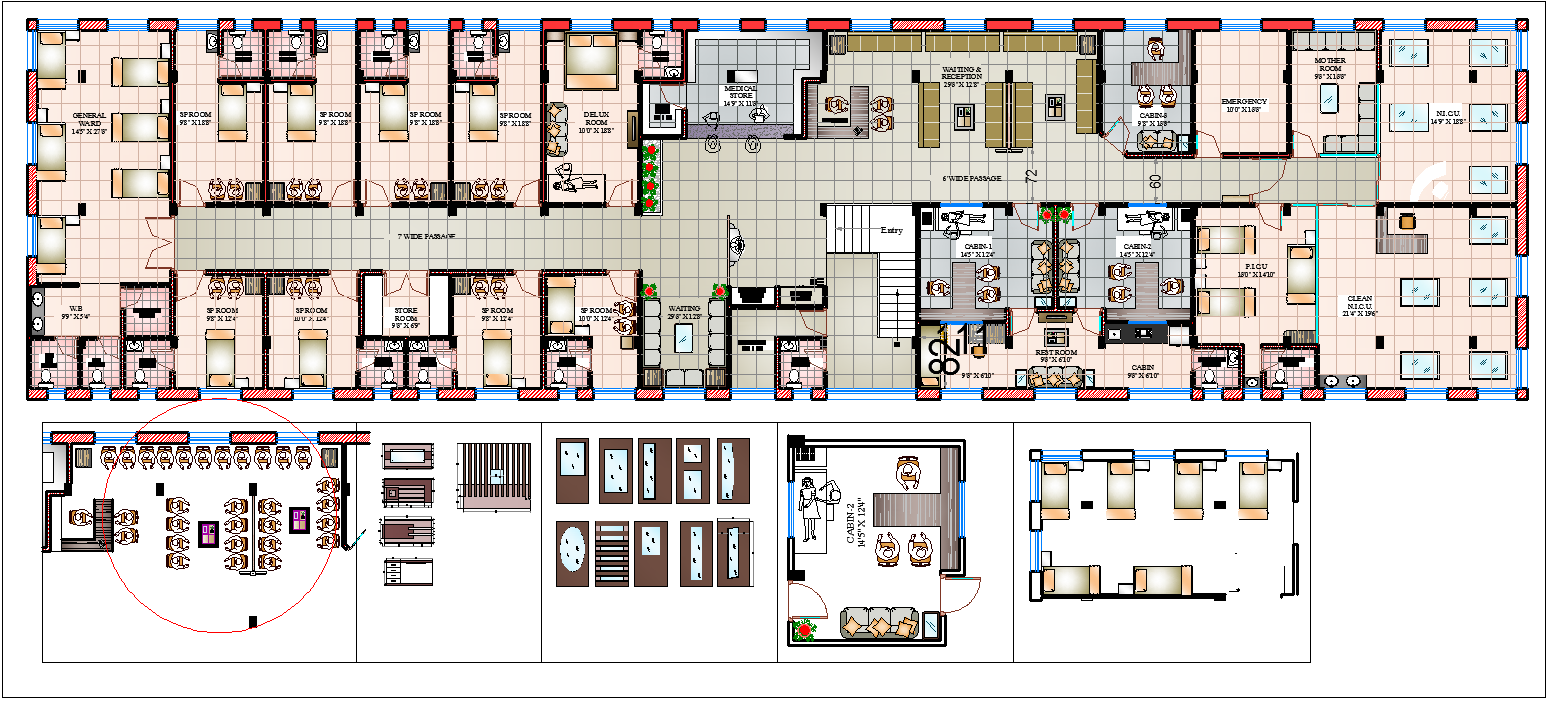Some Multi Speciality hospitals have outpatient departments and some have chronic treatment units. Common support units include a pharmacy, pathology, and radiology. Multi Speciality Hospital Plan DWG, Multi Speciality Hospital Plan Download file.