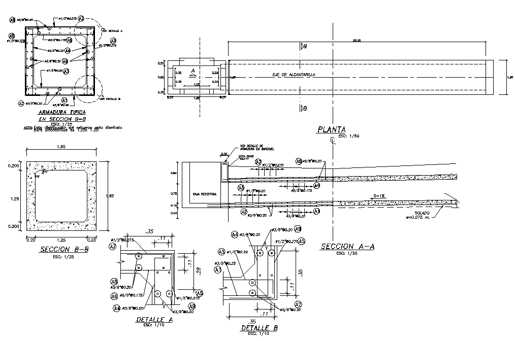 Typical armor plan autocad file, reinforcement detail, bolt nut detail, dimension detail, naming detail, concrete mortar detail, section line detail, numbing detail, etc.