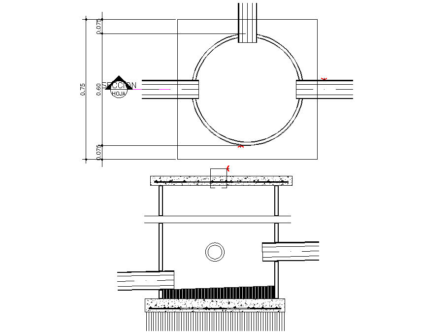 Main hole plan and section autocad file