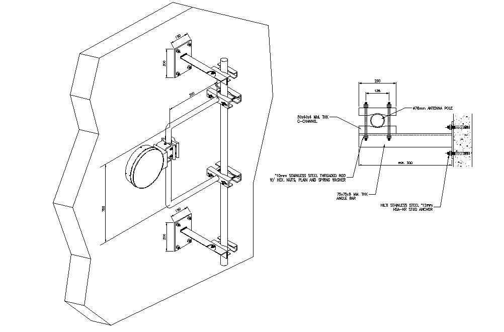 Detail 3 D micro wave plan layout file, concrete mortar detail, dimension detail, naming detail, bolt nut detail, etc.