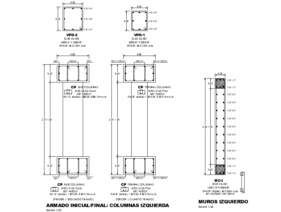 Left miros and column section layout file, reinforcement detail, bolt nut detail, naming detail, dimension detail, scale 1:25 detail, etc.