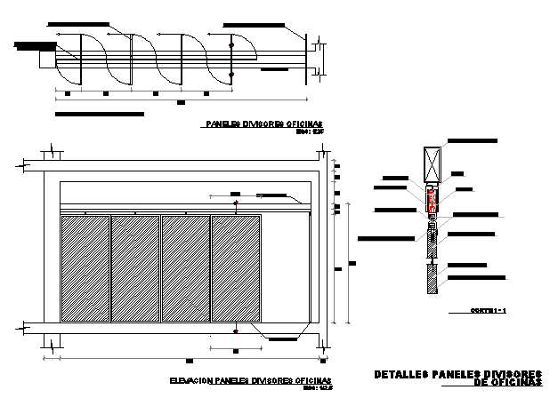 Top view panelling details, top view plan of panelling and pivort sectional details