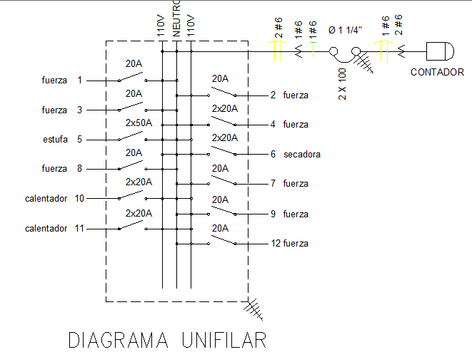 Diagram unifilar chart view of house that includes a detailed view of cantador, measures, dimensions, chart and much more of house chart.