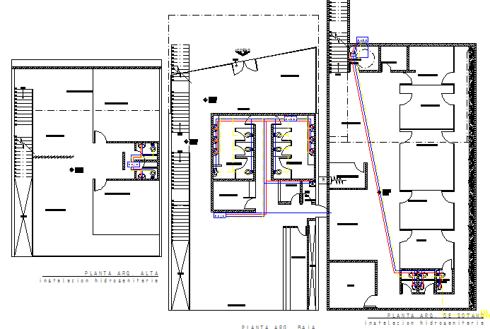 Sanitary installation details of all floors of government building that includes a detailed view of ground floor, first floor and top floor with sanitary sectional view, general hall, toilet sheet installation, wash basin installation, doors and ventilation and much more of sanitary installation details.