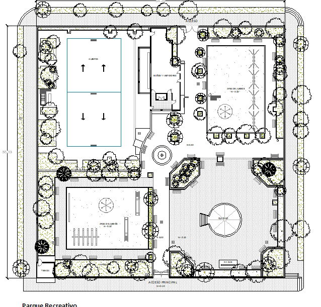 It may consist of grassy areas, rocks, soil, and trees, but may also contain buildings and other artifacts such as monuments, fountains or playground structures.