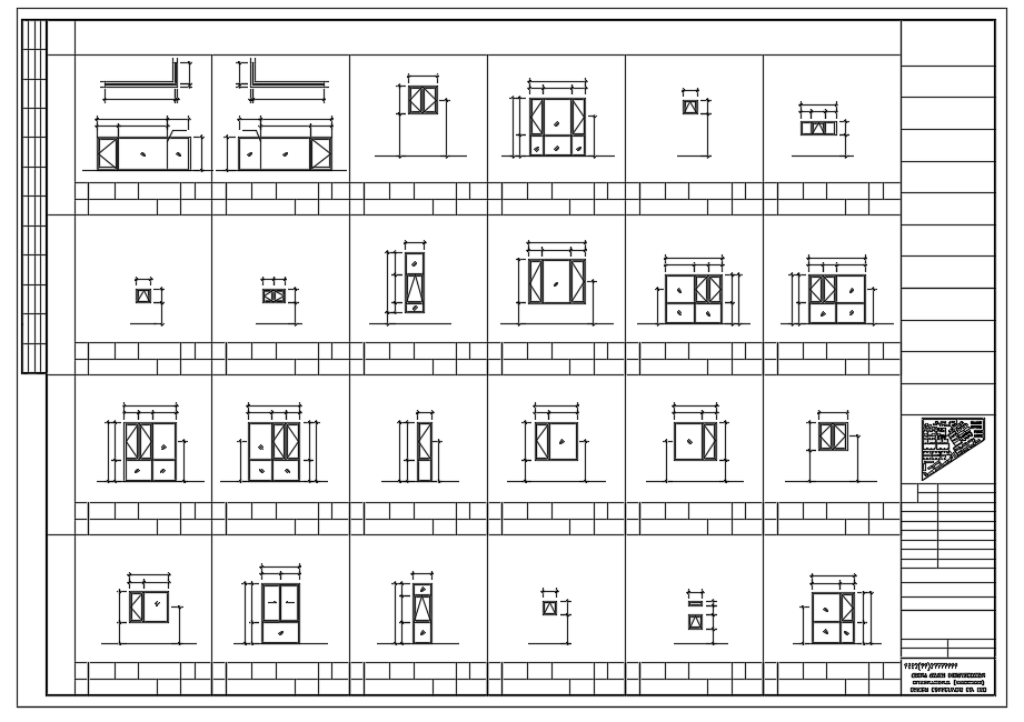 Window design view for house with furniture view dwg file in different types of window design view with its elevation with view of window, window frame view, handle,window lock and wall view with anchor of wall With different design and necessary dimension.
