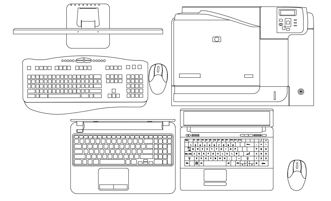 Laptop with its device plan with electronic view dwg file