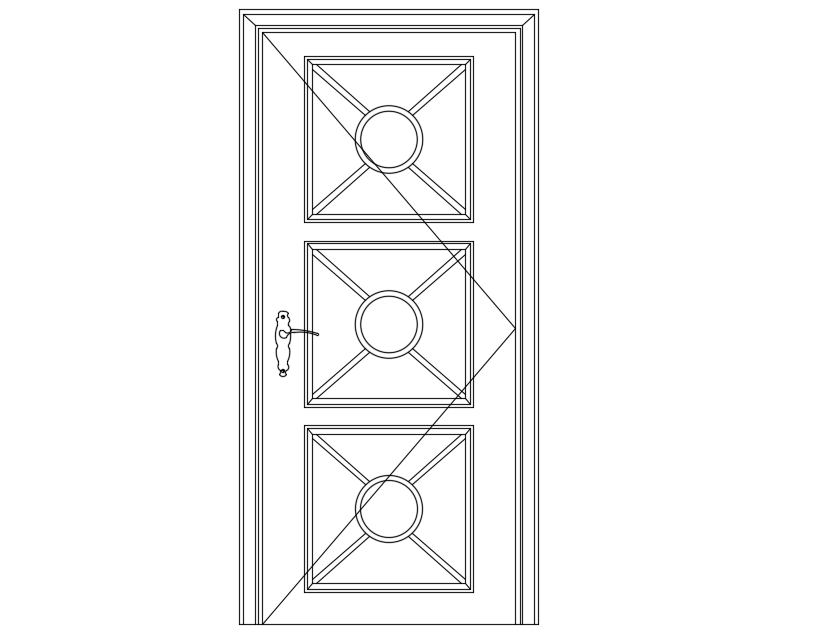 door frame view,door designer lock view and view of lattice round door design view on door main body in elevation of door.