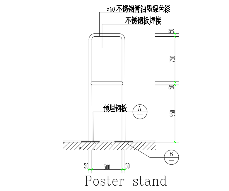 Poster stand elevation with metallic structure view dwg file in elevation with view of poster stand view