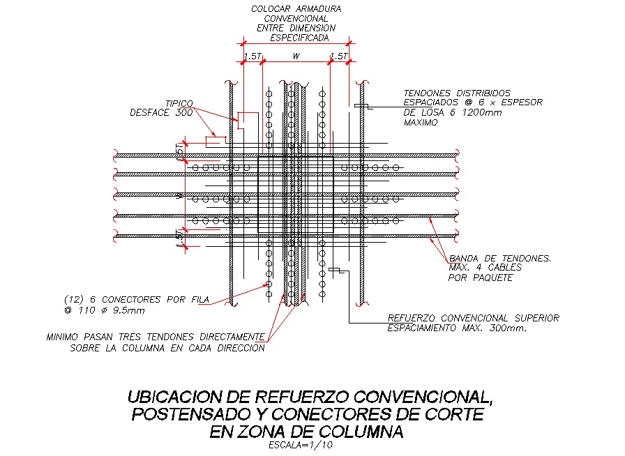 Post tension column reinforcement dwg file, dimension detail, naming detail, pipe line detail, bolt nut detail, scale 1:10 detail, etc.