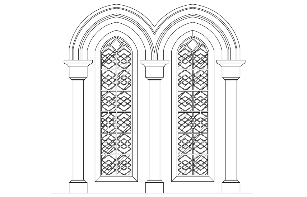 Window design with roman pillar view dwg file