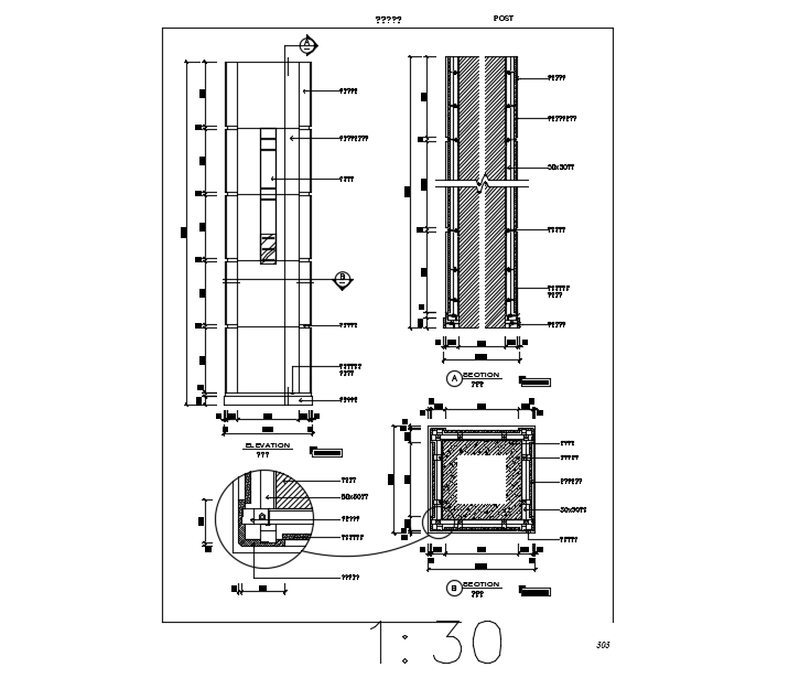 Stone column cad design view with structure view dwg file in elevation with height and width view of