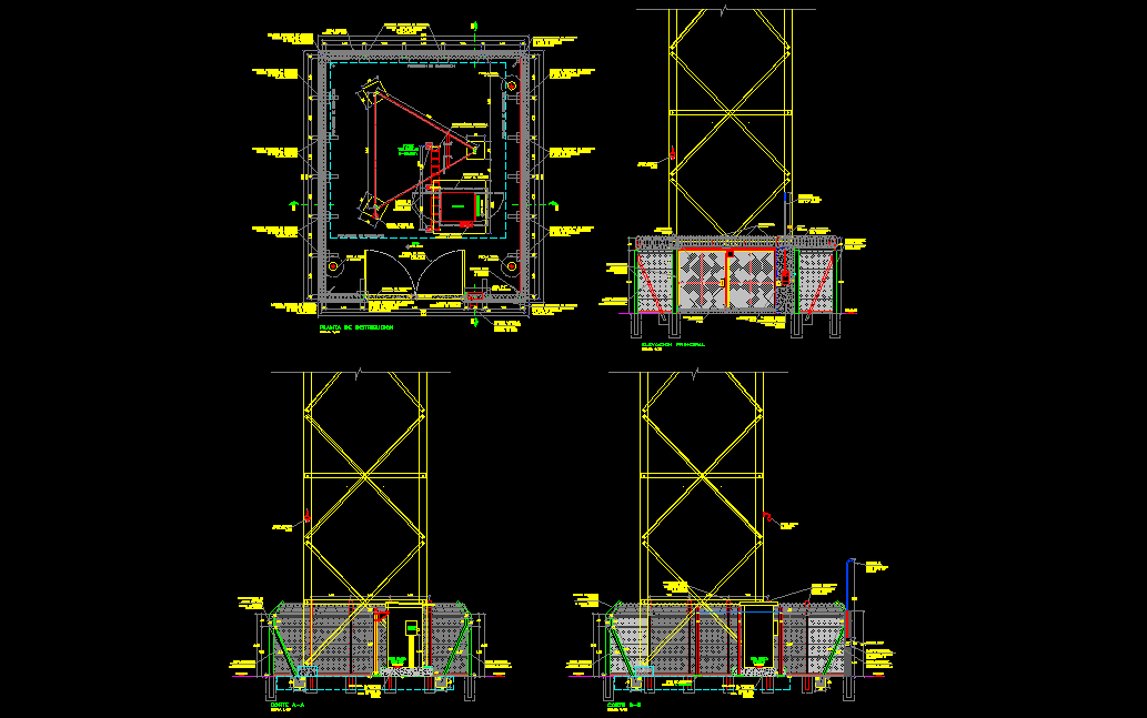 Terminal node plan and section dwg file, dimension detail, naming detail, furniture detail in door and window detail, steel structural detail, hatching detail, etc.