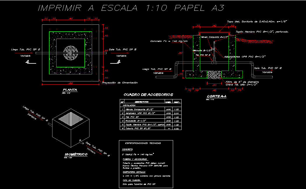 Isometric Air valve plan dwg file, plan and section detail, pipe line detail, specification detail, dimension detail, naming detail, table detail, section line detail, etc.