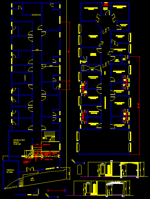 The hospital layout DWG CAD Design is provided here. Consultant room, nursery, first stage room, ICU surgery, operation theater, and change room are given.