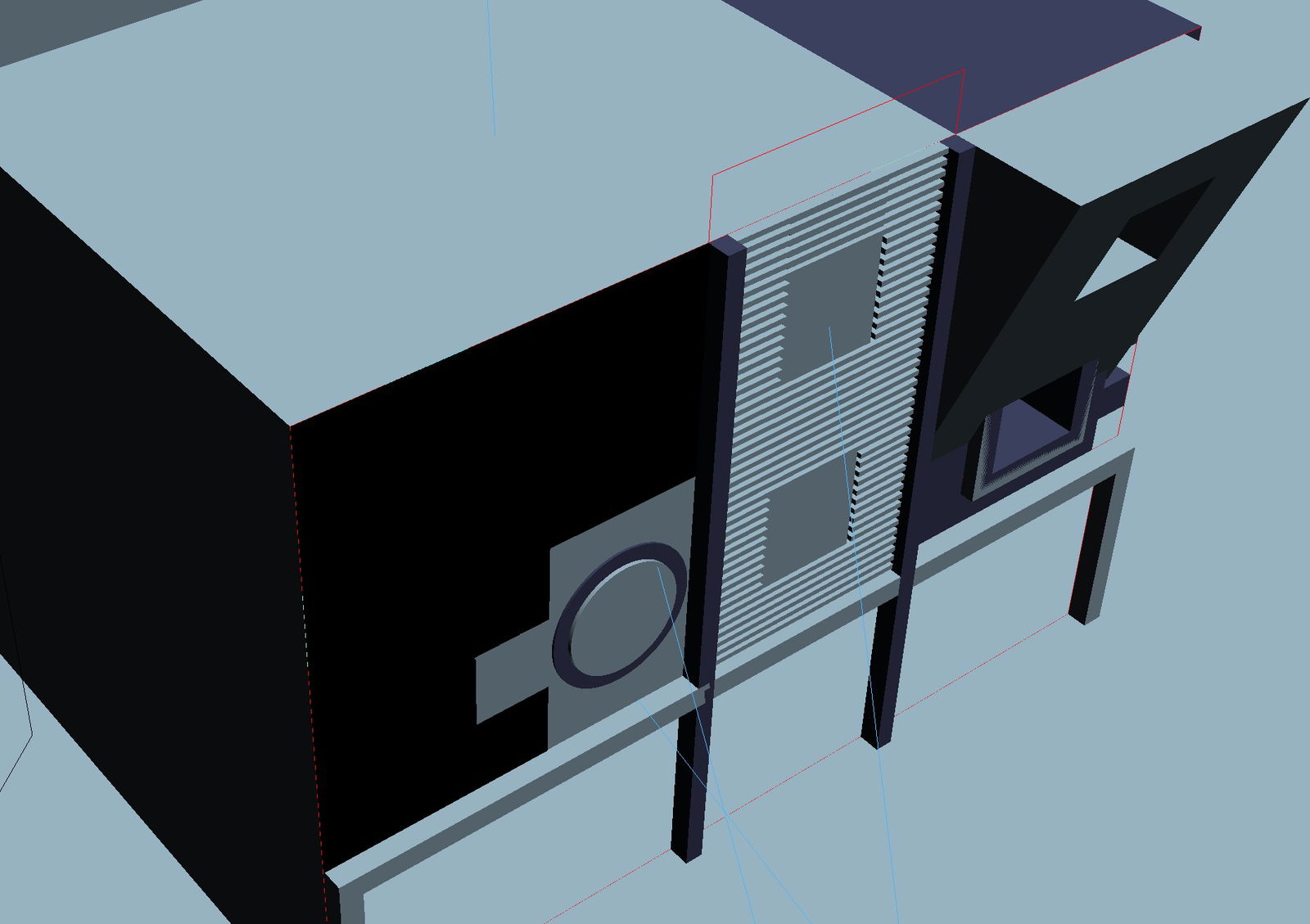 Commercial house in 3 d layout file, foundation detail, hatching detail, furniture detail in door and window detail, front elevation detail, roof section detail, etc.