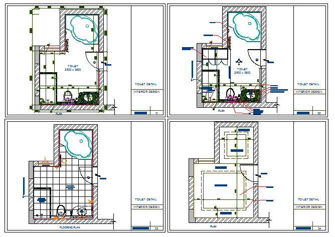 Sanitary installation details of house project that includes a detailed view of toilet sectional view, cut sections, plumbing details, toilet sheet installation, wash basin installation, doors and ventilation, equipment, dimensions and much more of toilet installation.