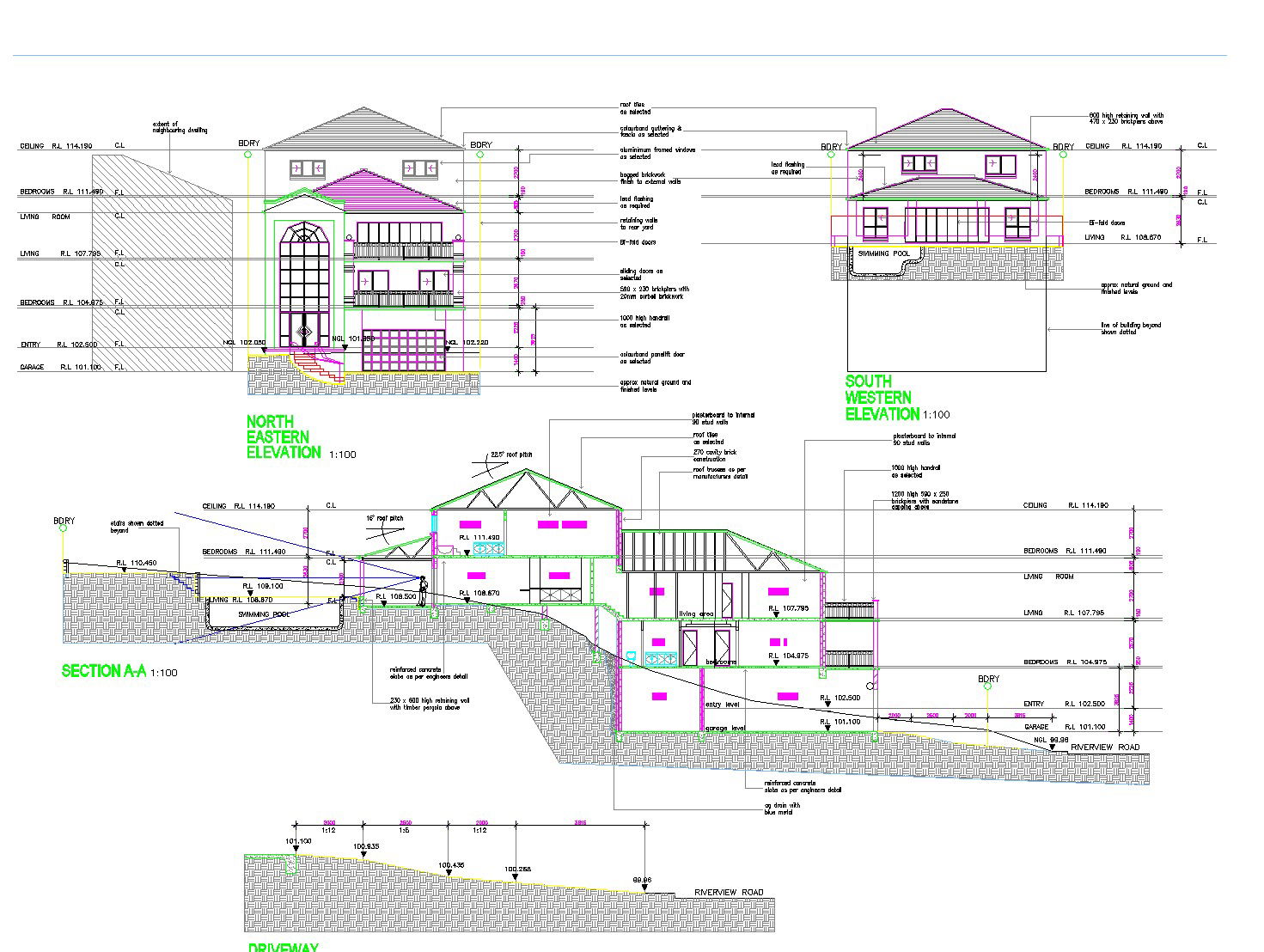 Elevation and section house plan autocad file