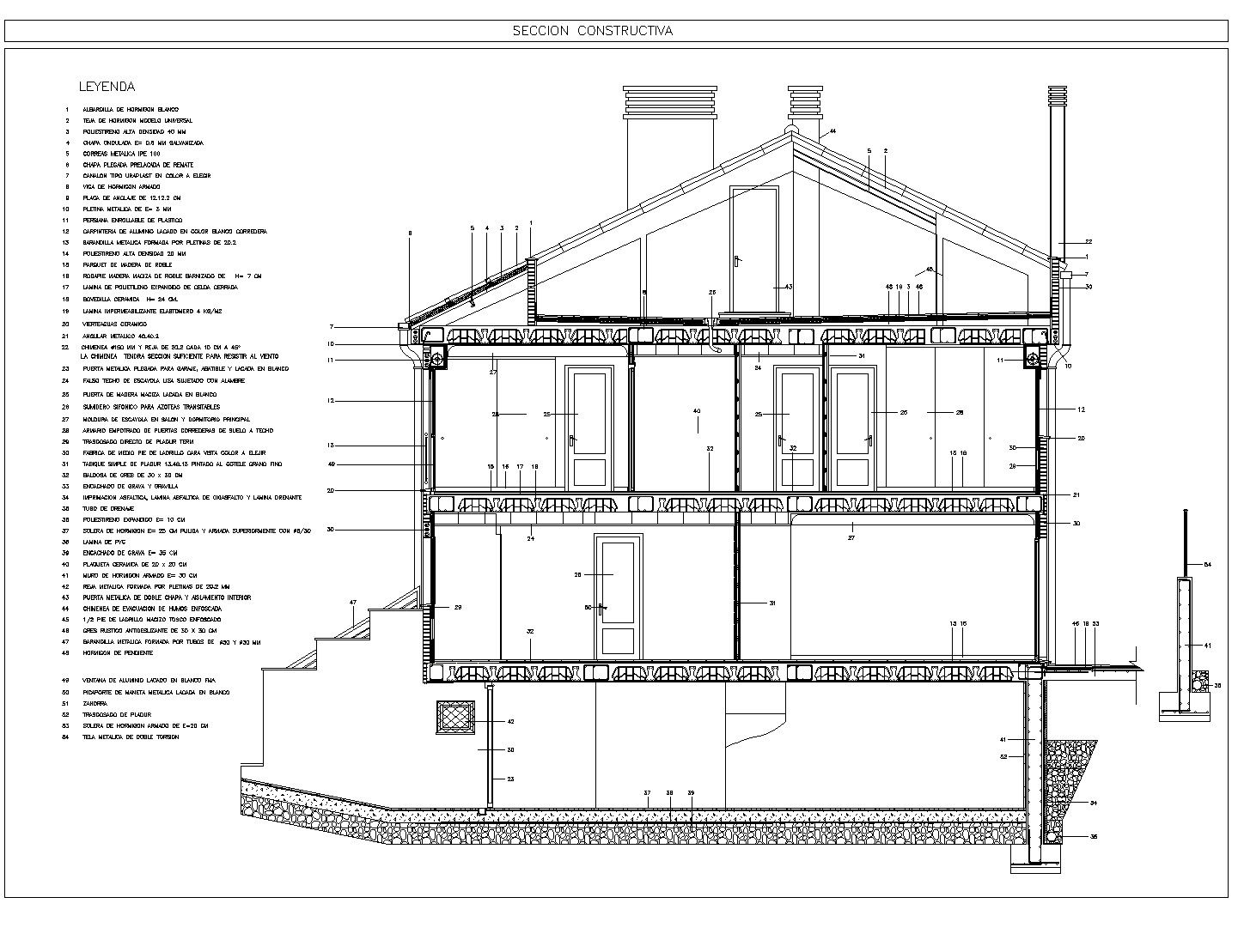 Section house plan layout file, foundation section plan detail, naming detail, numbering detail, furniture detail in door and window detail, stair detail, roof plan detail, stone detail, etc.