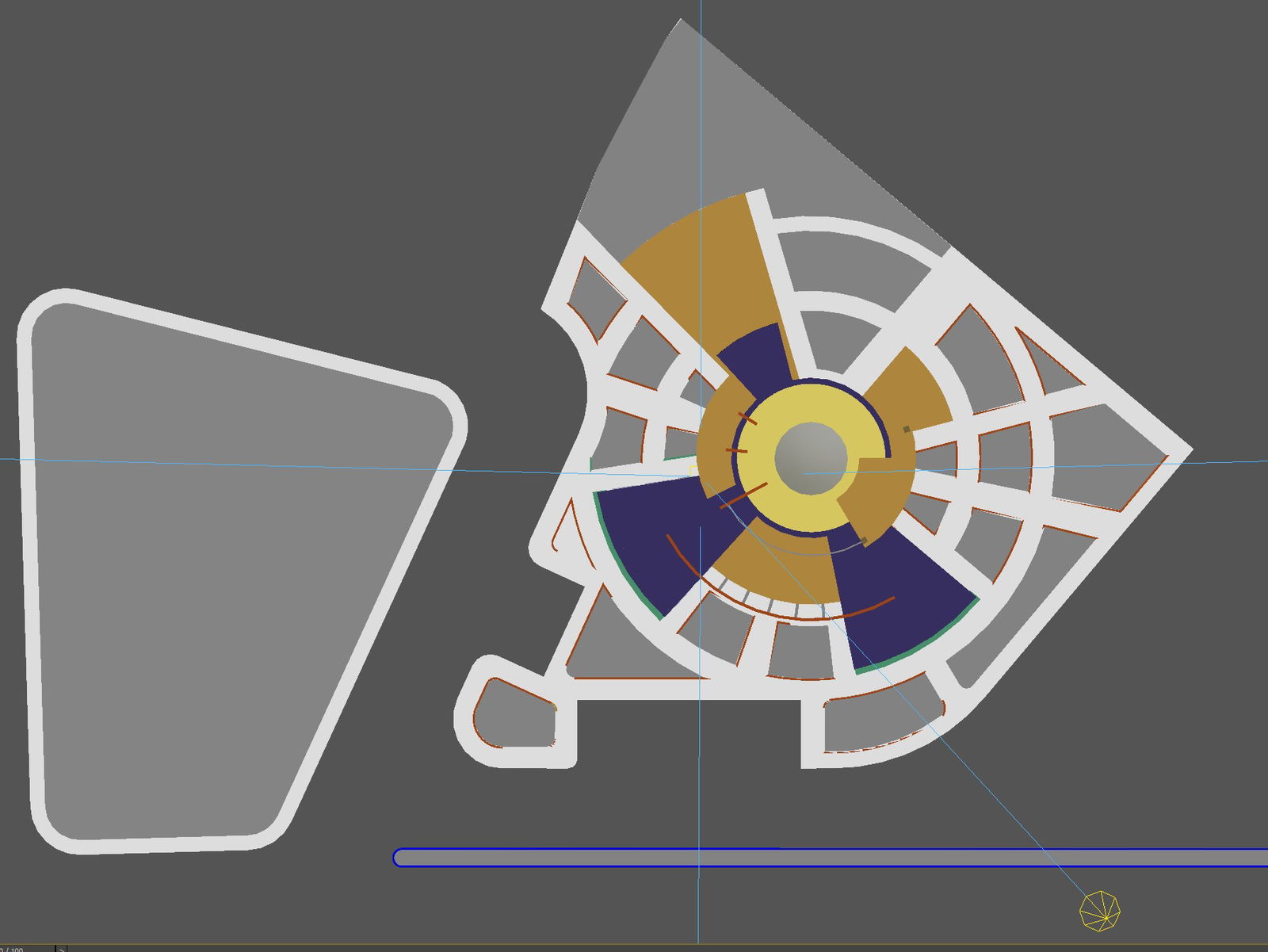 Detail of 3 D house plan dwg file, round shape building detail, coloring detail, line plan detail, etc.