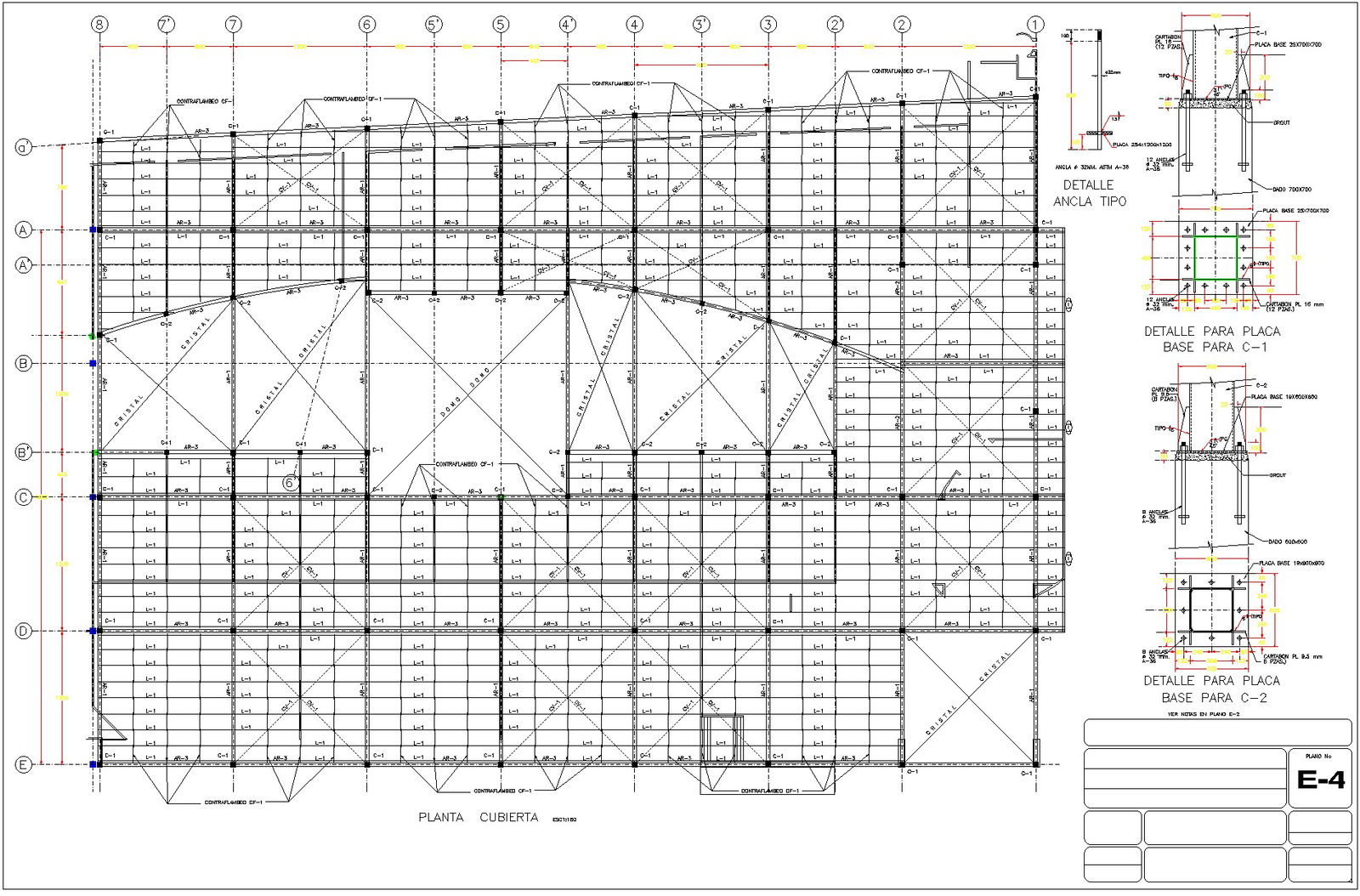 Plan of constructive detail. Plan with sections and details. Detailing of frame axis, lamp frame detail, column detail, etc.,