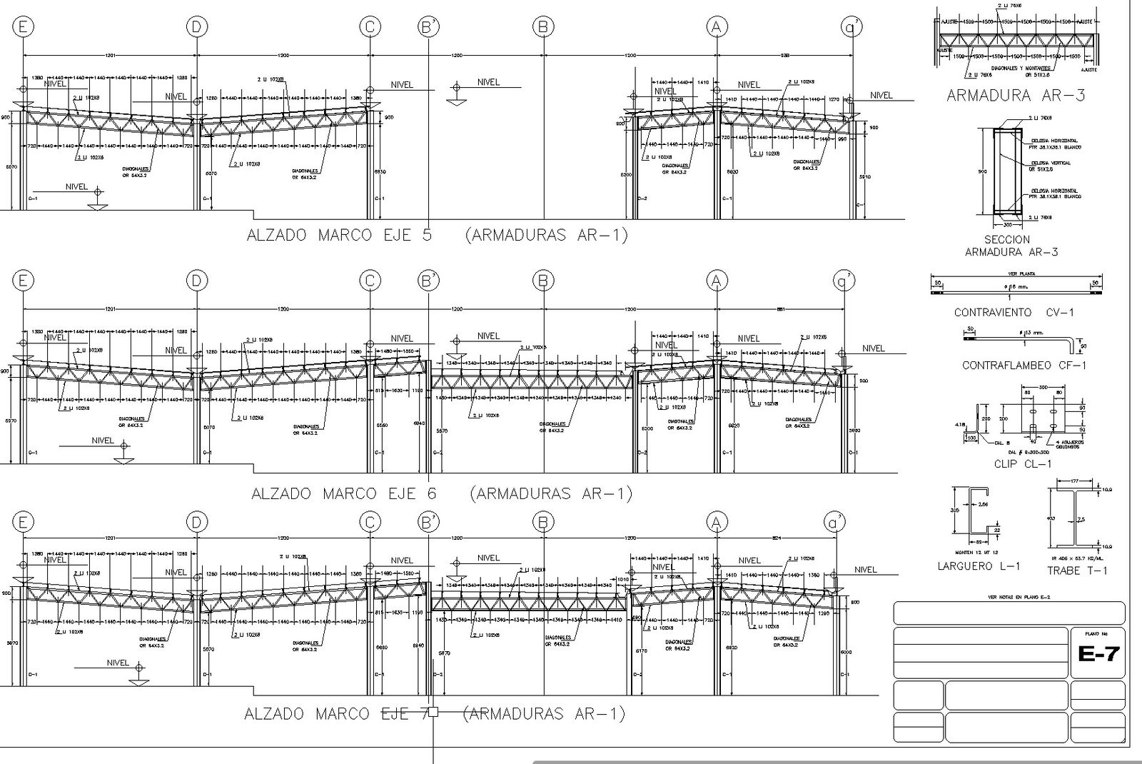 Plan of constructive detail. Plan with sections and details. Detailing of frame axis, lamp frame detail, column detail, etc.,