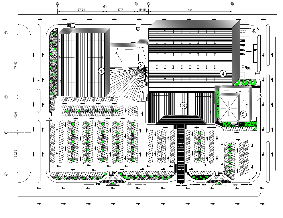 Working mall project plan dwg file, centre lien plan detail, dimension detail, naming detail, car parking detail, etc.