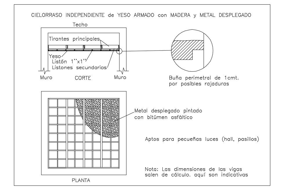 Suspend ceiling with wooden metal plan and section view dwg file in plan with view of area distribution with view of plan with wall and metal support with wooden material and section view with detail view.