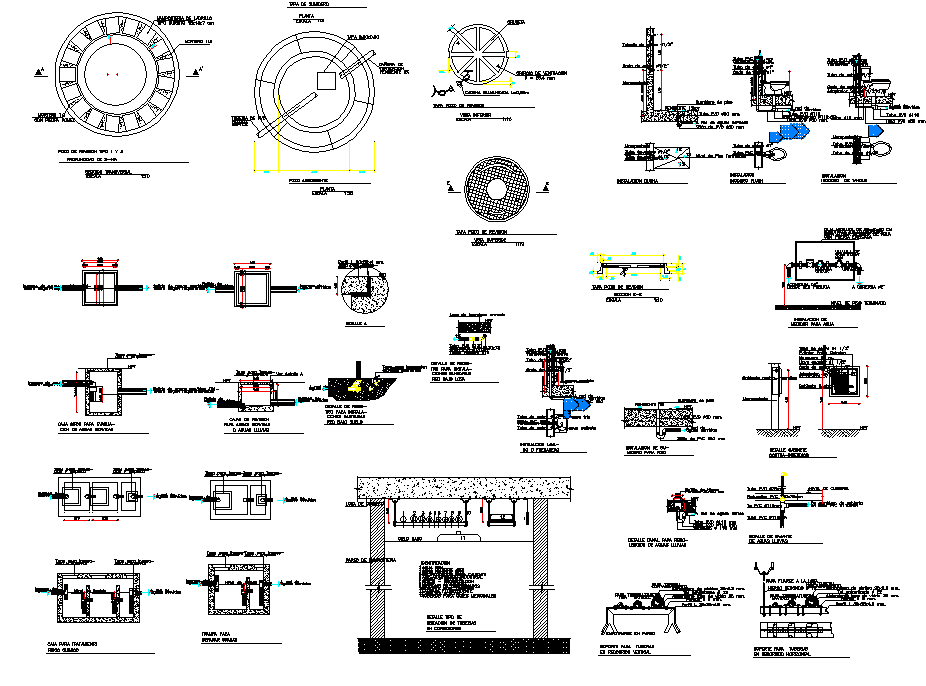 Plumbing sanitary plan and elevation layout file, section lien detail, dimension detail, concrete mortar detail, hatching detail, water closed elevation detail, sink elevation detail, etc.
