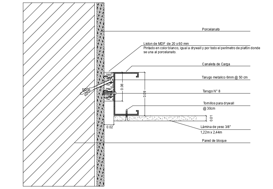Ceiling structure detail view dwg file in elevation detail view with ceiling area with view of wall with wall support with metallic joint view.