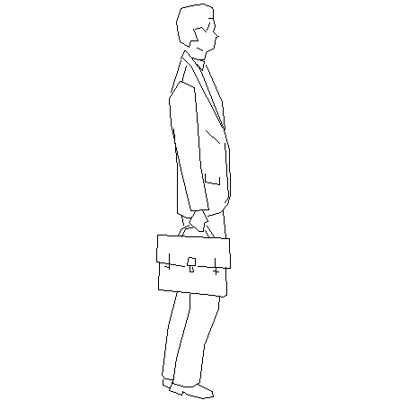Creative business man cad design block that includes a detailed view of man with bag in hand design for multi purpose use of cad projects.