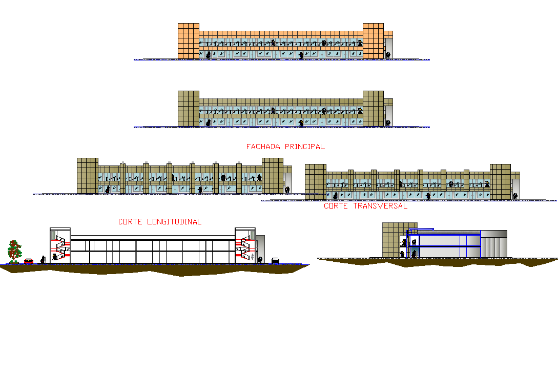 Shopping mall elevation and section plan autoacd file, front elevation detail, side elevation detail, section A-A’ detail, section B-B’ detail, landscaping detail in tree and plant detail, stair cutting detail, etc.