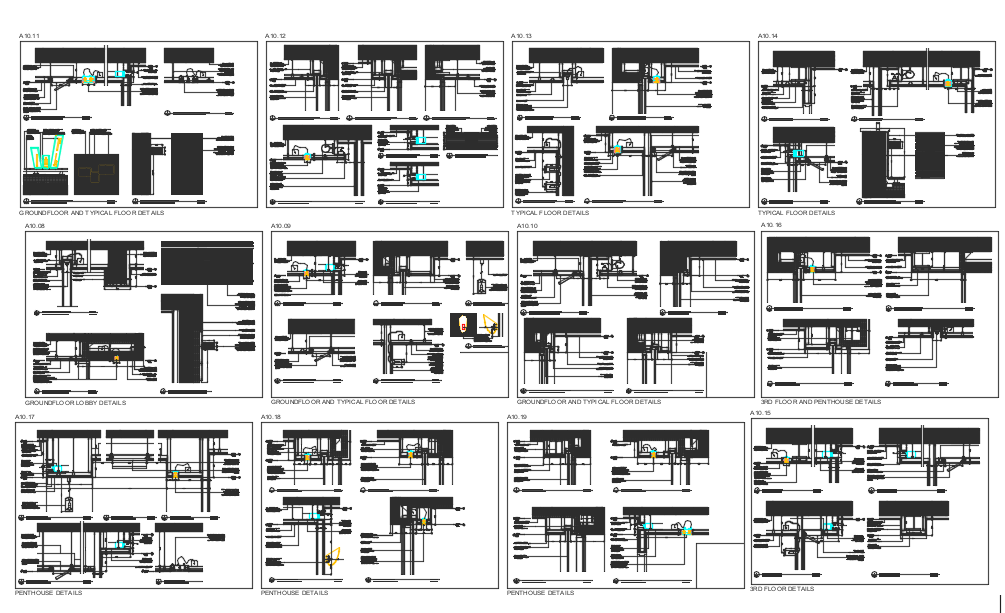 Foundation Details which includes ground floor lobby detail, typical floor detail, penthouse detail, etc.