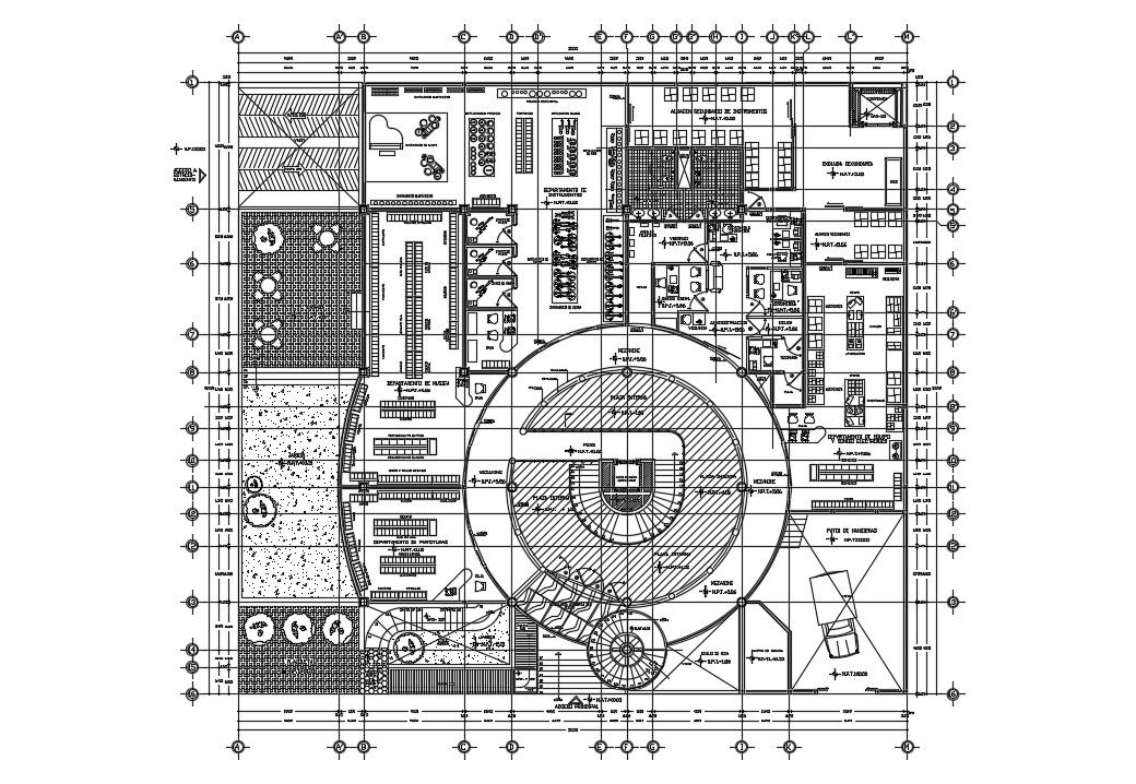 Music Instrument Store secondary instruments store, electronic instruments, center lien plan detail, dimension detail, naming detail, spiral stair detail, toilet detail, leveling detail,car parking detail, etc.