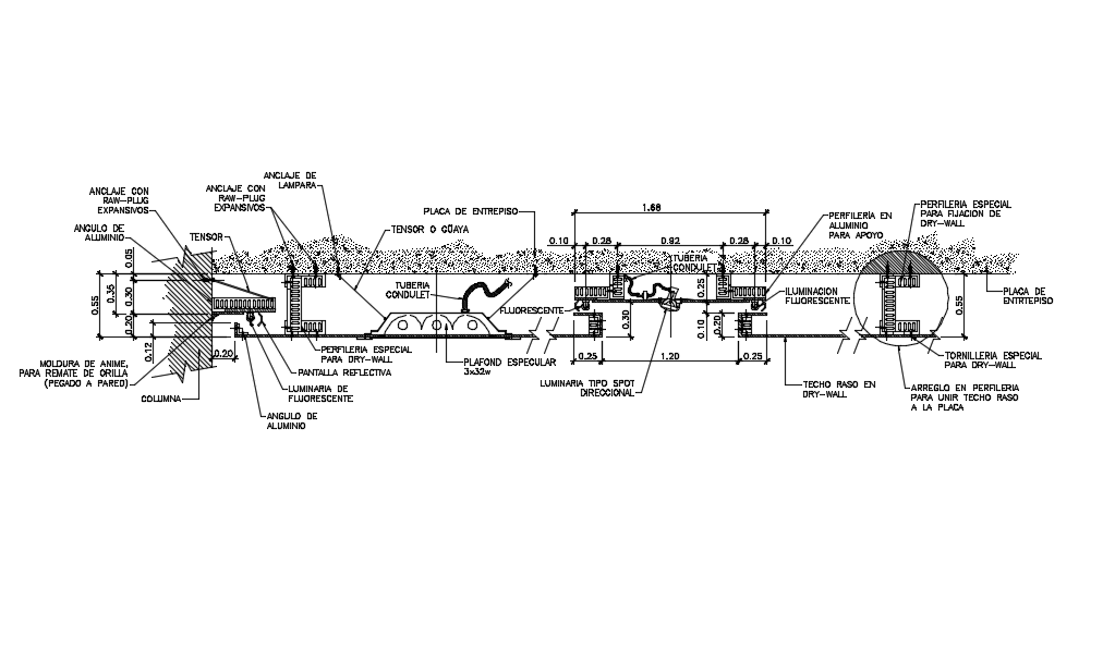 Door Window Section which includes pipeline detail, dimension detail, lighting section Roof drywall, etc.