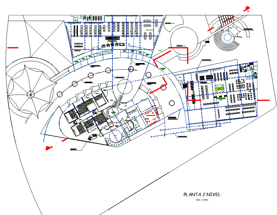 Shopping Center Plan which includes section line plan detail, landscaping detail in tree and plant detail, hatching detail, stair detail, etc.