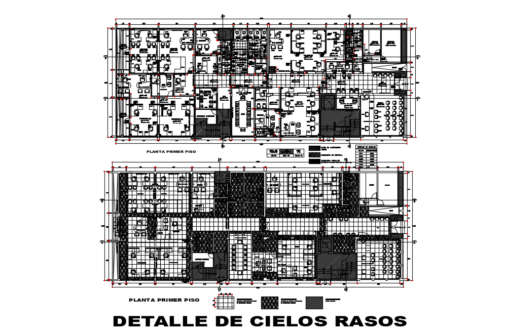 Ofice floor plan detail of plants details with first-floor plan detail which includes sub-directors room, manager room, meeting room, employee room, electrical room, projection room, waiting area, hall, storage area,