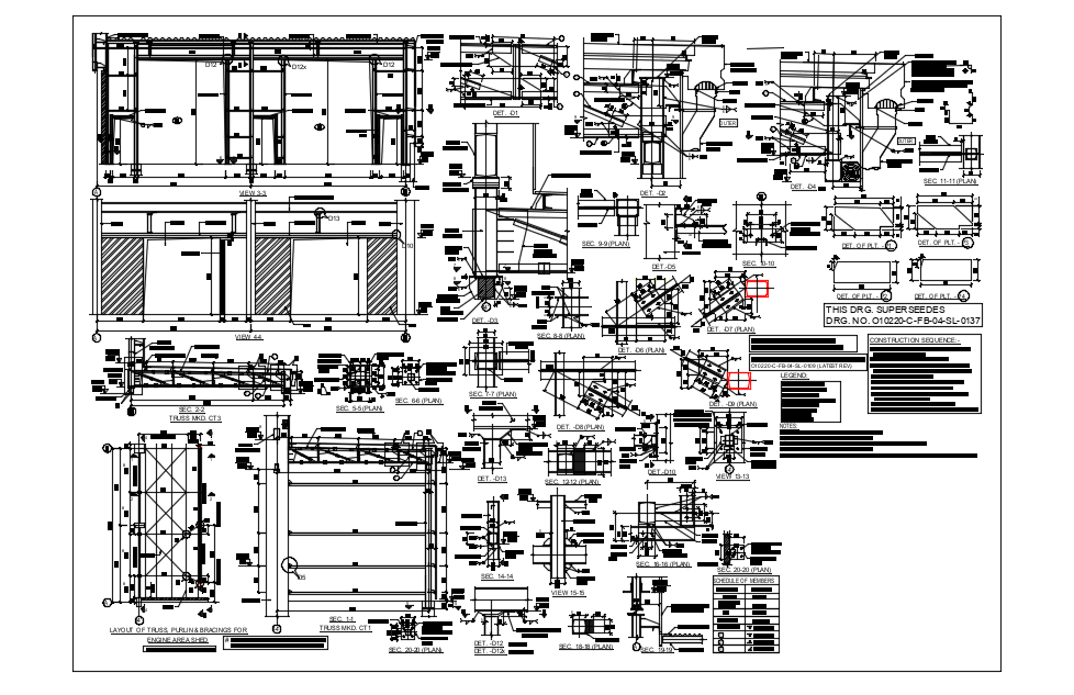 Structure Detail View With Sectional And Elevation In Autocad file of truss and column metal support view with view of column detail view with a metal part detail.