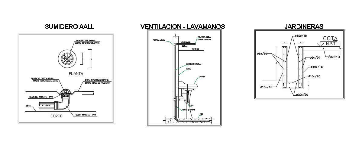 Ventilation Detail autoacd file, dimension detail, plumbing section plan detail, hatching detail, reinforcement detail, etc.