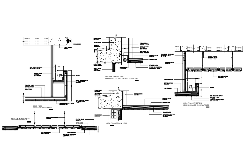 False Sky Free AutoCAD Drawings file in different types of joint sectional elevation with a view of the area with the necessary dimension.
