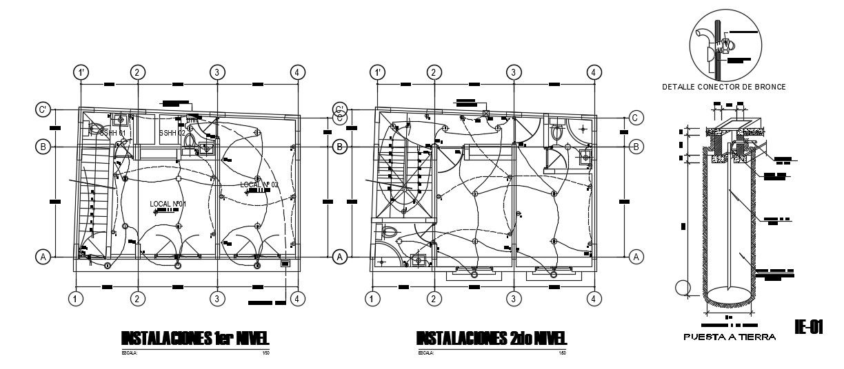 Home Wiring Plan In AutoCAD File which includes the circuit detail, center line plan detail, dimension detail, stair detail, specification detail, naming detail.