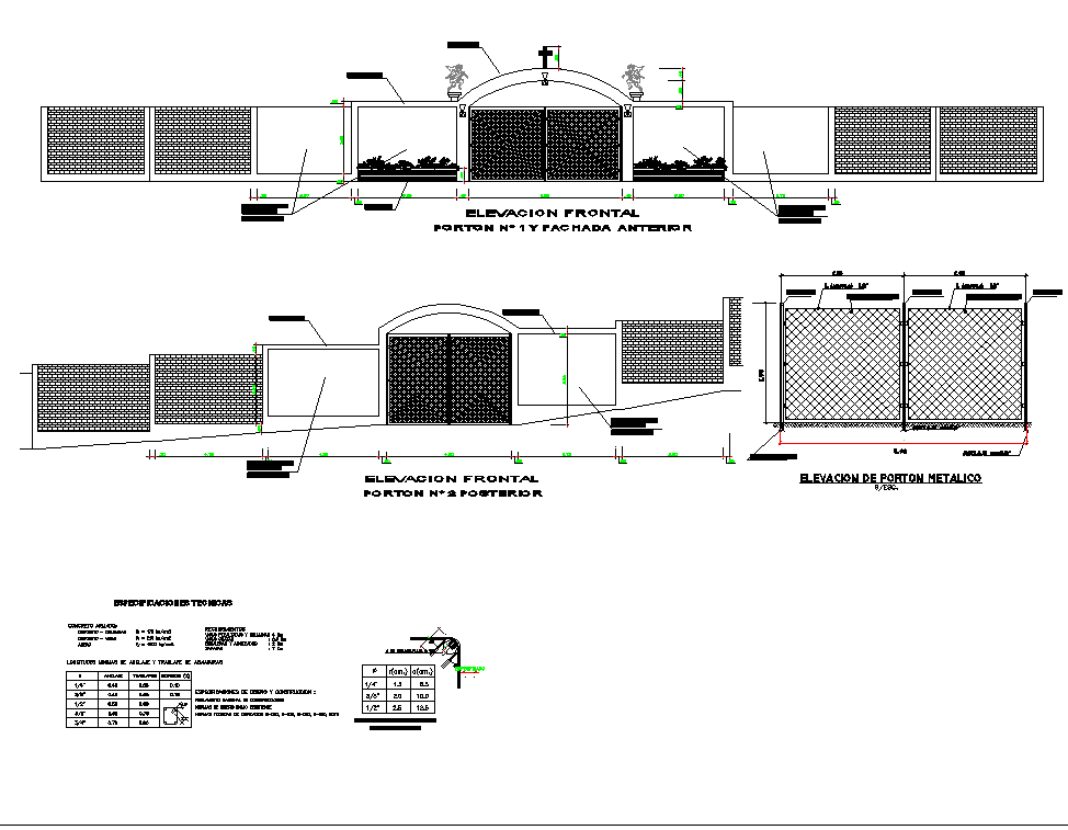 Gate Elevation Free AutoCAD Drawings which includes front elevation detail, dimension detail, table specification detail, etc.