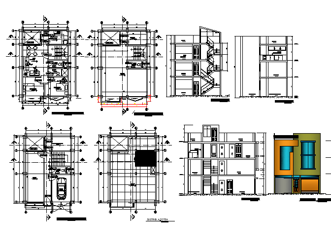 Building Elevation In AutoCAD File which includes kitchen, dining room, bedroom, warehouse, garage, service room, rooftop.