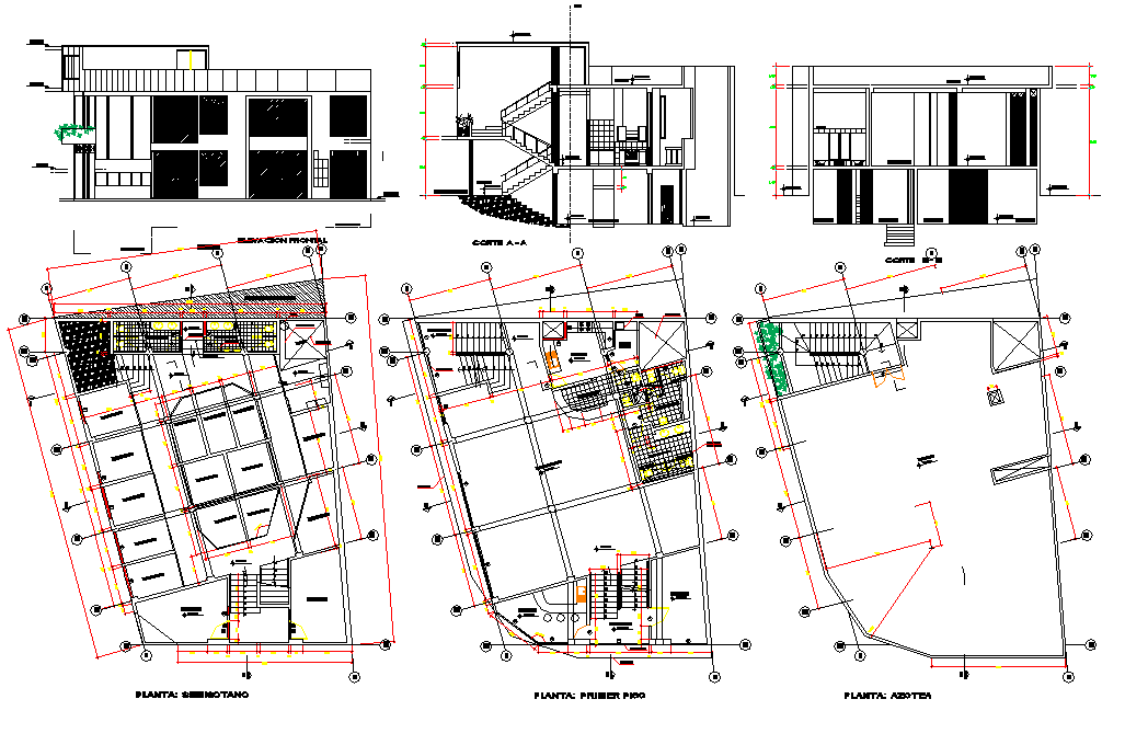 Commercial floor plan and elevation with architecture view dwg file in floor plan with view of wall with its distribution with view of office area and washing area view with elevation with view of floor with floor level with view of necessary dimension.