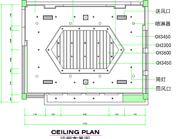 Lighting details of ceiling of kitchen that includes a detailed view of ceiling plan, ceiling view, lighting view, dimensions and much more of ceiling plan.