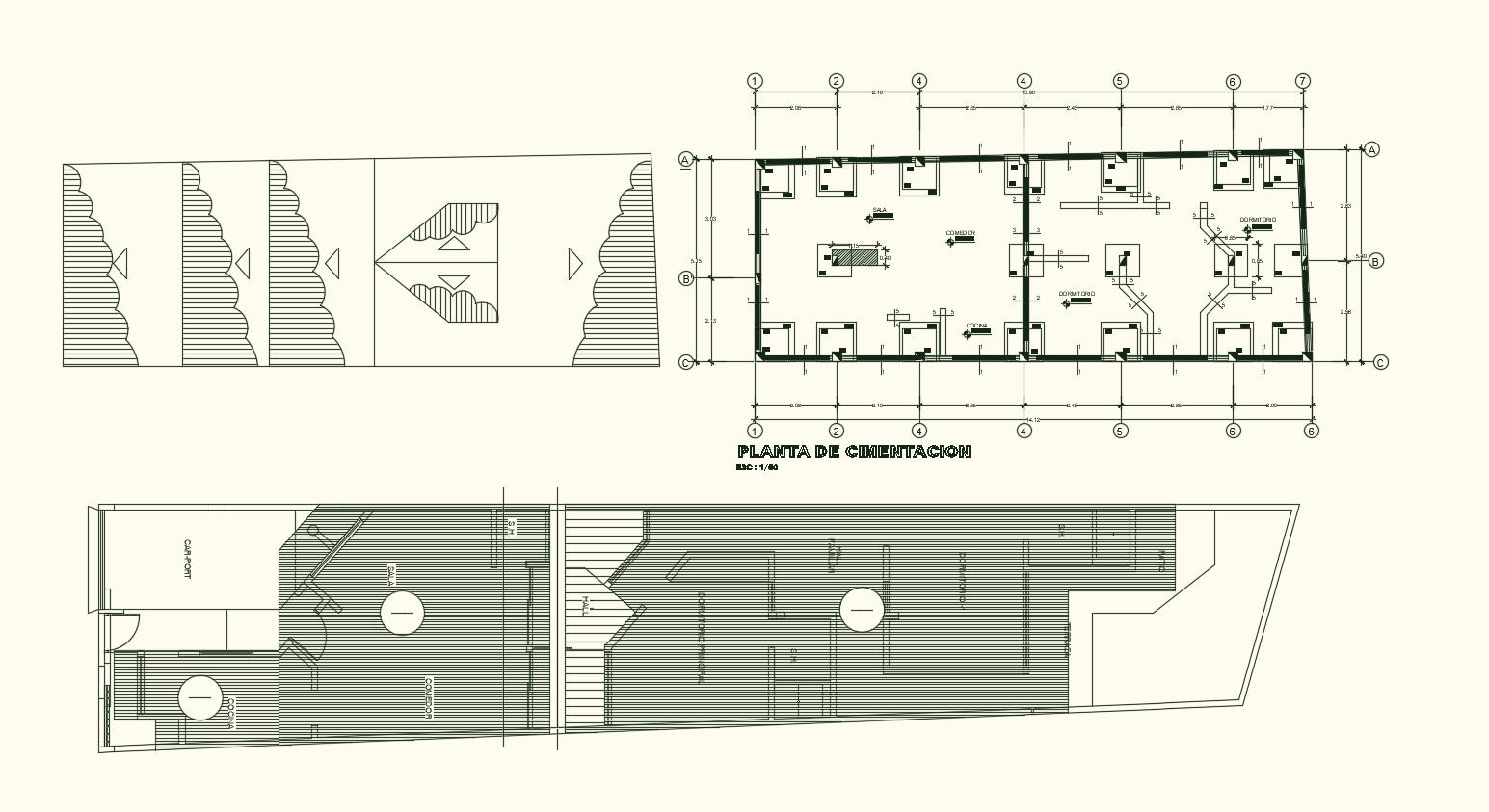 Foundation plan with column detail with construction view for house dwg file in foundation plan with view of area view,wall and column view and different types of view with necessary dimension in plan.